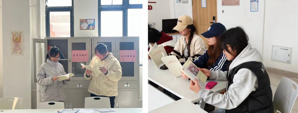 活动现场,社区书架整齐陈列着《习近平的七年知青岁月》、《习近平教育重要论述讲义》等经典红色书籍,涵盖革命历史、时代精神等多个领域,为学子们提供了丰富的精神食粮。同学们有序挑选心仪书籍,认真翻阅品读,在文字中回望革命历程,感悟先辈们的初心与担当。分享环节中,学子们结合自身阅读感悟,踊跃发言、交流心得。有的同学分享了革命先烈面对艰难险阻不屈不挠的奋斗故事,表达了传承红色精神的坚定决心;有的同学结合专业学习,畅谈如何将红色精神融入专业领域的学习与实践,立志练就过硬本领、增长才干。