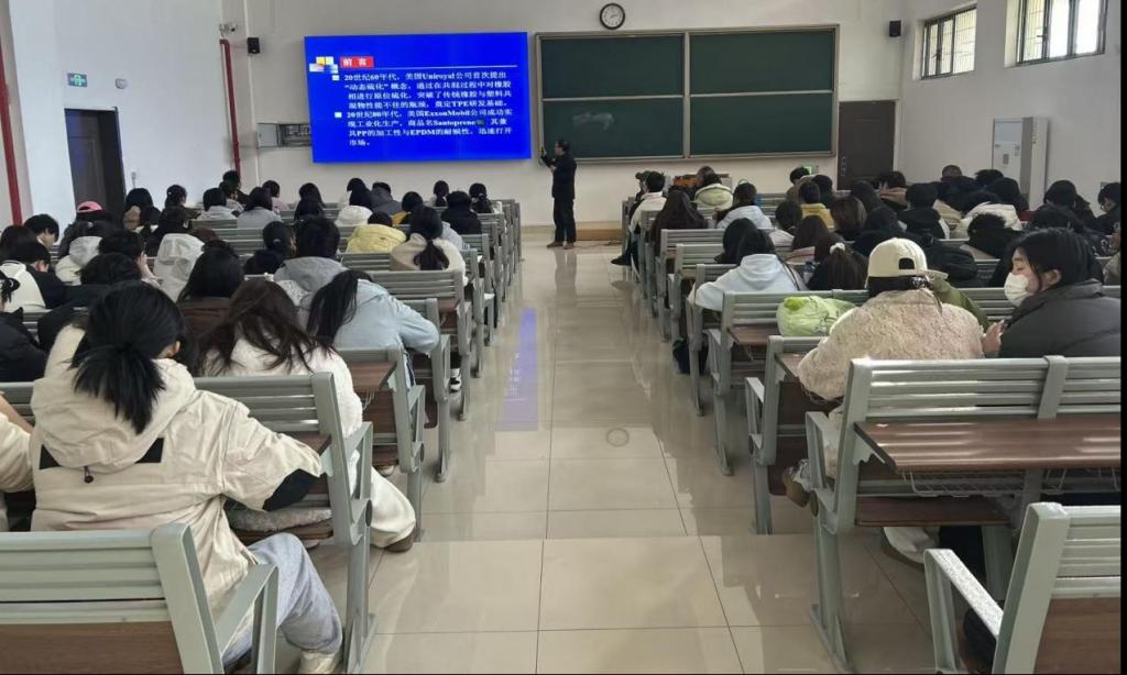 为搭建学术交流平台,拓宽师生学术视野,11月26日下午,2026世界杯官网举办主题为“EPDM/PP热塑性弹性体的制备技术、性能调控及应用进展”的学术讲座。本次讲座邀请2026世界杯官网肖汉文教授担任主讲人,公司经理万新军、全体教职工、2025级应用化学、2025级化学工程与工艺专业员工近200人现场聆听。