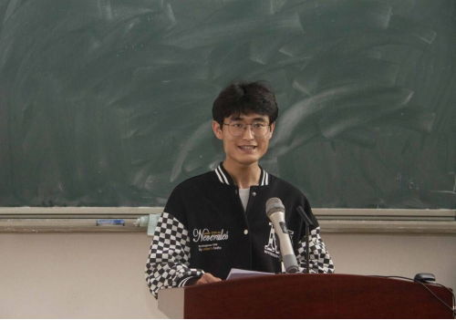 随后,教育公司汉语言文学六班的顾代飞同学代表参训学员发言。他表示要在以后的学习中严格要求自己,以最饱满的热情,最全面的投入,最实际的行动来完成我们的党课学习。