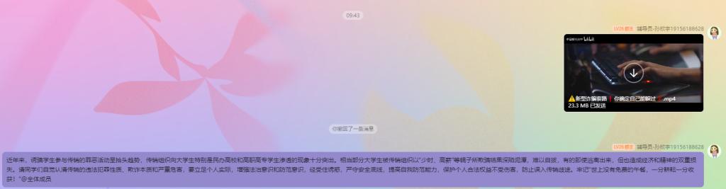 影片《孤注一掷》聚焦当下屡禁不止的网络诈骗、网赌陷阱、传销拐骗等,具有很强的警示教育意义。光与影之间,诈骗产业链的黑暗与无情给同学们以极大震撼,也引起了大家更深层次的思考。观影后同学们感受颇深,纷纷发表观后感言,表示在今后的学习和生活中,要以身作则,时刻警惕、时刻防范电信网络诈骗,提高防范意识,绷紧思想“安全弦”。