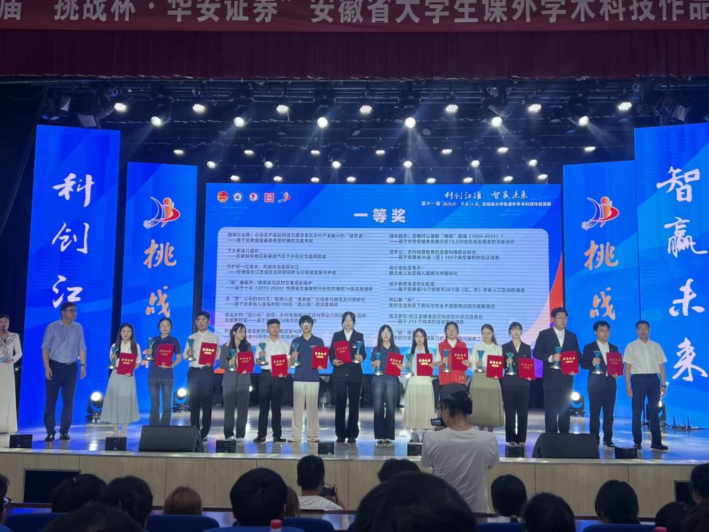 6月10日- 12日,由共青团安徽省委、安徽省教育厅、安徽省社会科公司、安徽省科学技术协会、安徽省员工联合会联合主办的第十一届“挑战杯・华安证券”安徽省老员工课外学术科技作品竞赛省级决赛在安徽财经大学圆满落幕。本次赛事吸引了全省108所高校、超过10 万名员工参赛,经过层层选拔,1165件作品参与角逐,最终 86 所高校的 350个项目入围省级决赛。