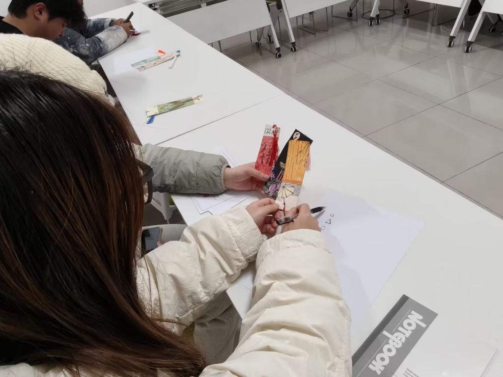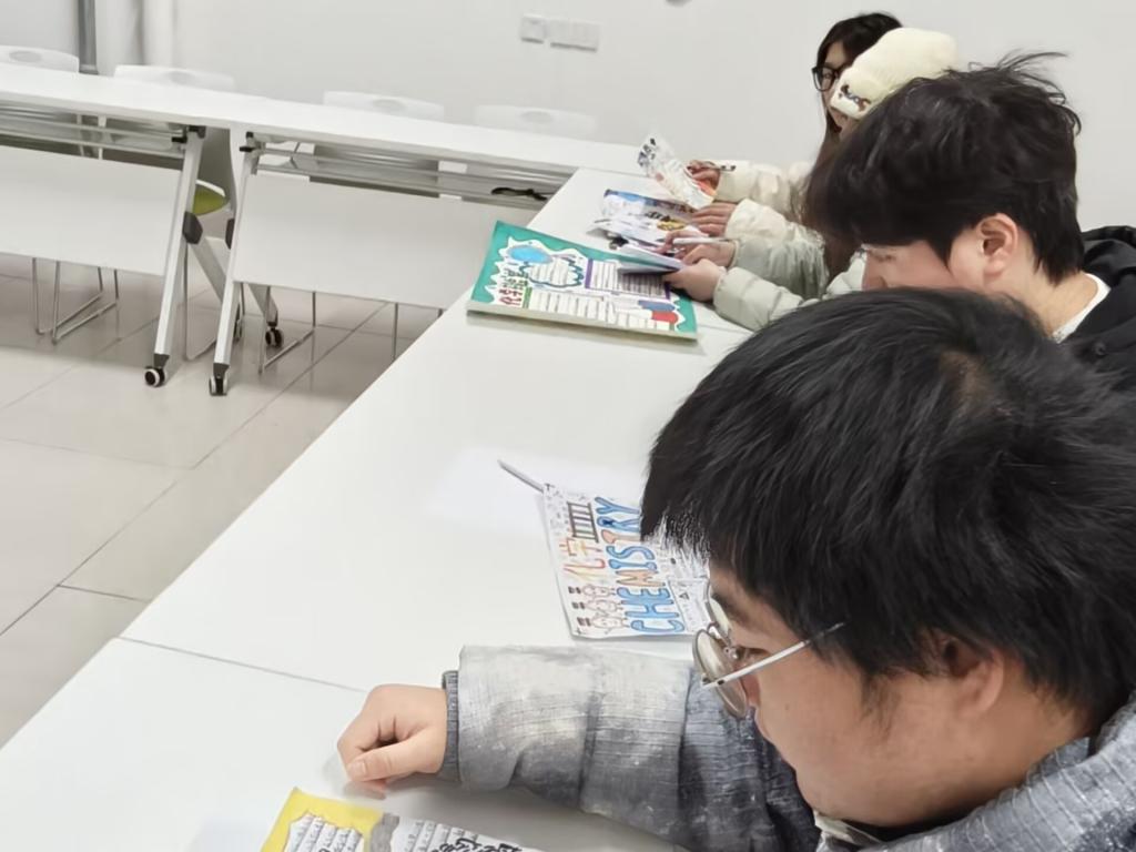随后,活动进入核心环节。在创意书签制作环节,心理辅导员引导学子们将专业元素与成长期许相结合,亲手打造专属书签。大家或以彩笔绘制分子结构、电池模型等专业符号,或写下“深耕储能领域,逐光而行”“以化工严谨,解心理迷思”等激励话语,有的还点缀叶片、贴纸等装饰,让小小的书签既承载专业热爱,又饱含对未来的憧憬。学子们专注创作,将对化学竞赛的备战决心、人际相处的美好期待融入细节:“把目标写在书签上,翻开书本就能看见动力”“带着这份专属信物,愿能勇敢攻克科研难关”。公司将为学子妥善保管书签,待明年同期返还,见证成长路上的每一步坚守。